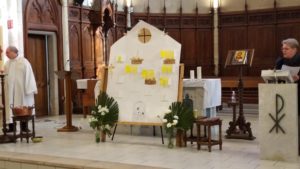 Nos chants (« Ouvre ta porte, ouvre ton coeur « , « Ta nuit sera lumière de midi« ) ont accompagné notre joyeuse célébration.